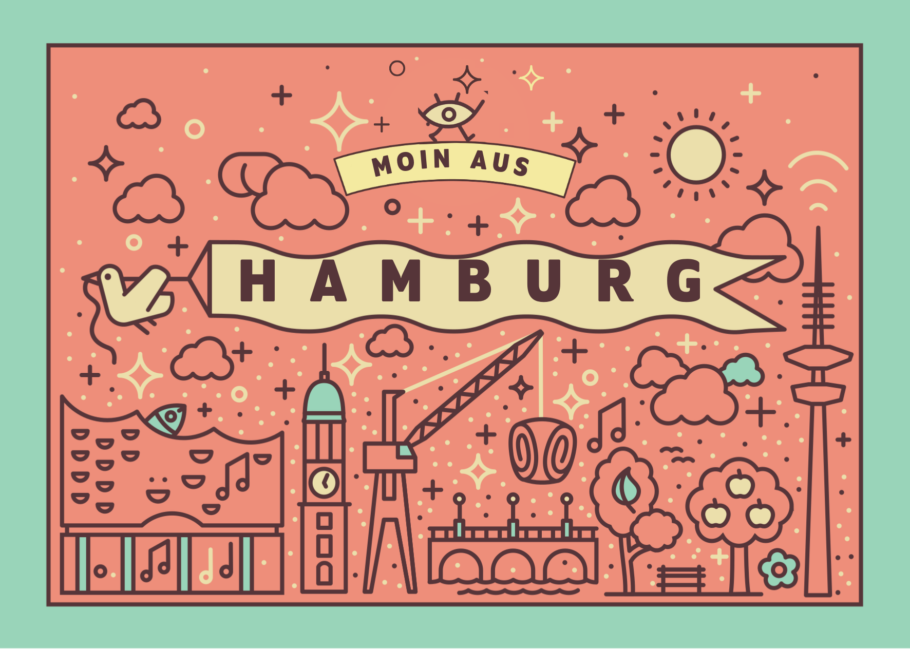 Versende Grüße von der Hafenkante an deine Liebsten in der Ferne mit unserer knuffigen Hamburg-Postkarte.